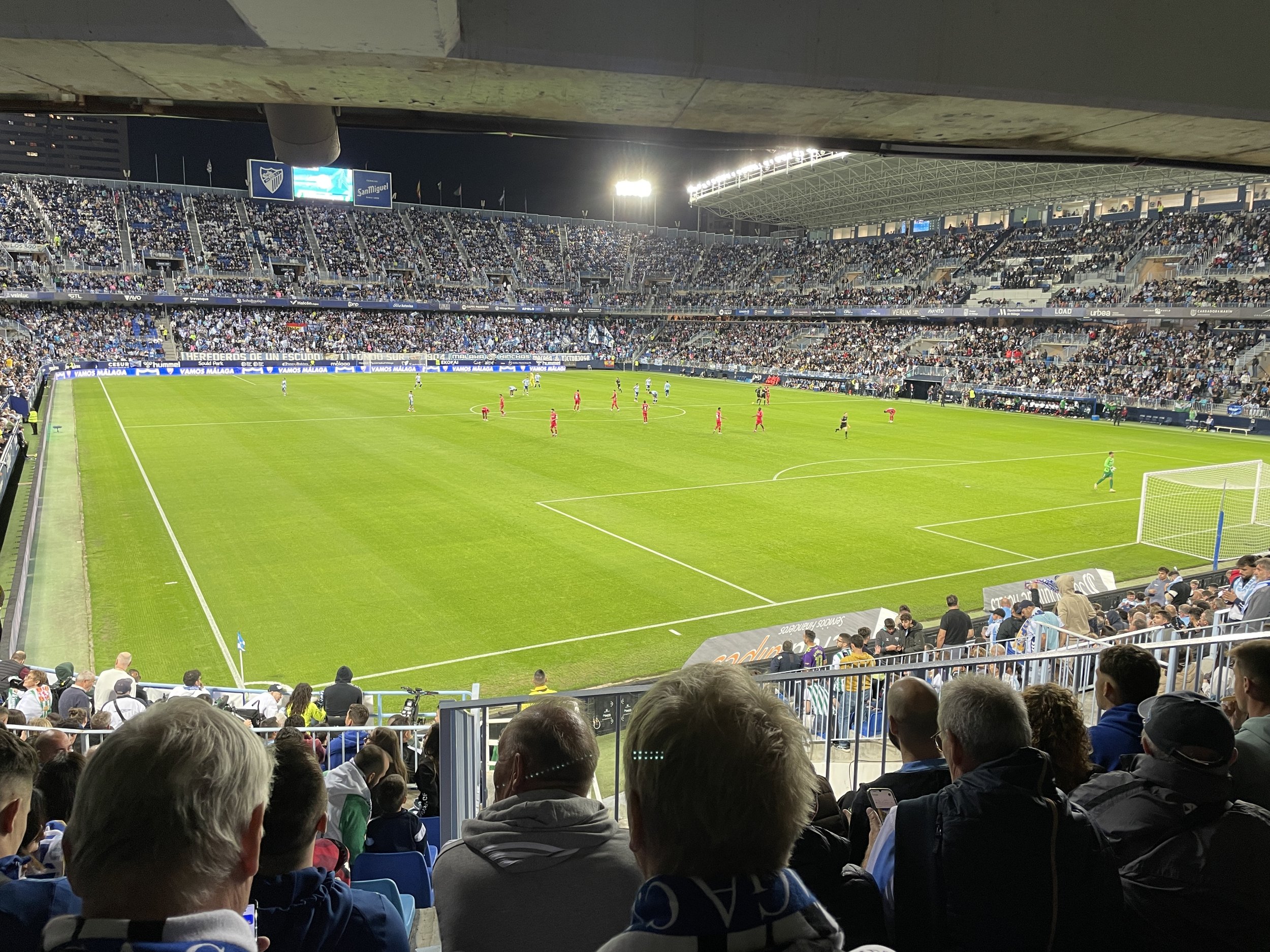 Nyt kävin Malagassa katsomassa Espanjan liigaa. Stadion oli melkein täynnä, 26 000 katsojaa, ja tunnelma hyvä täydet 115 minuuttia. Mutta oheispalvelut eivät hääppöiset ole, vessat sentään siistit.