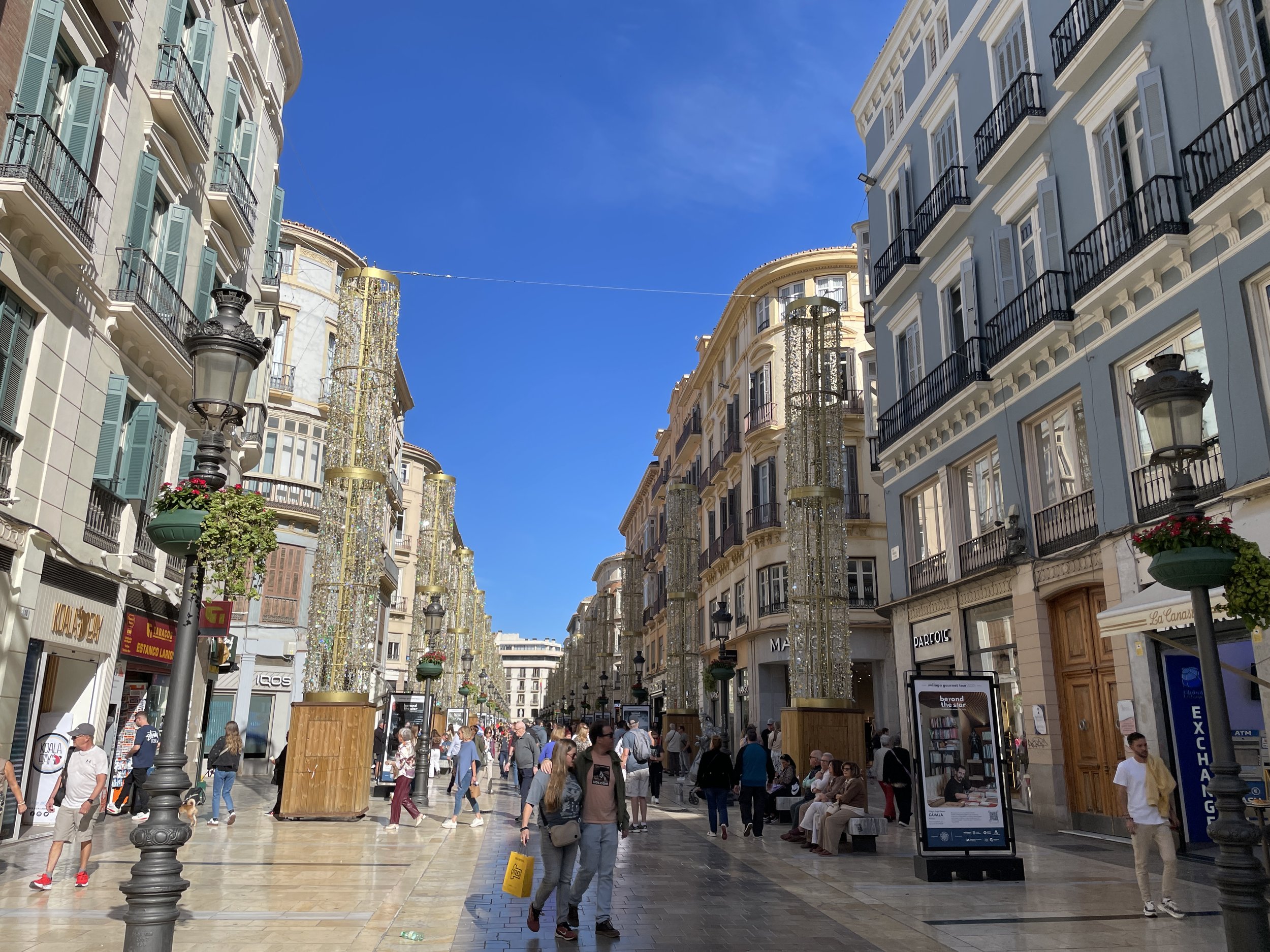 Komeita jouluvaloja viriteltiin Malagan ja muiden Aurinkorannikon kaupunkien keskustoihin marraskuun alkupuolella. (Kuva: Janne Rantanen)