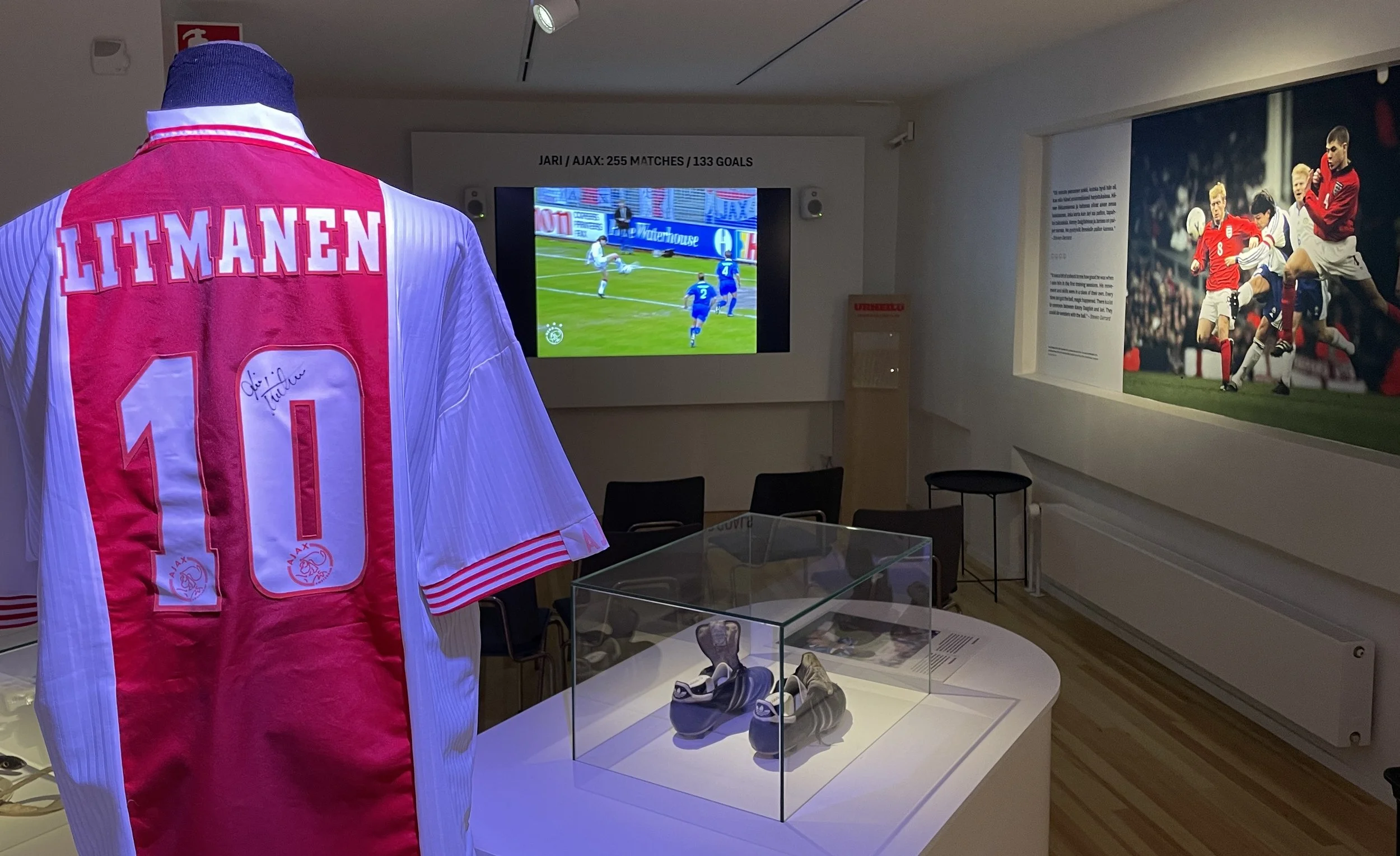 Jari Litmasen uranäyttelyssä voi esimerkiksi katsoa kaikki Kuninkaan Ajaxissa tekemät maalit. Litmanen oli avainpelaaja, kun Ajax voitti Mestarien liigan. Hollannissa pari tuhatta poikavauvaa ristittiin noina vuosina Jariksi. (Kuva: Janne Rantanen)