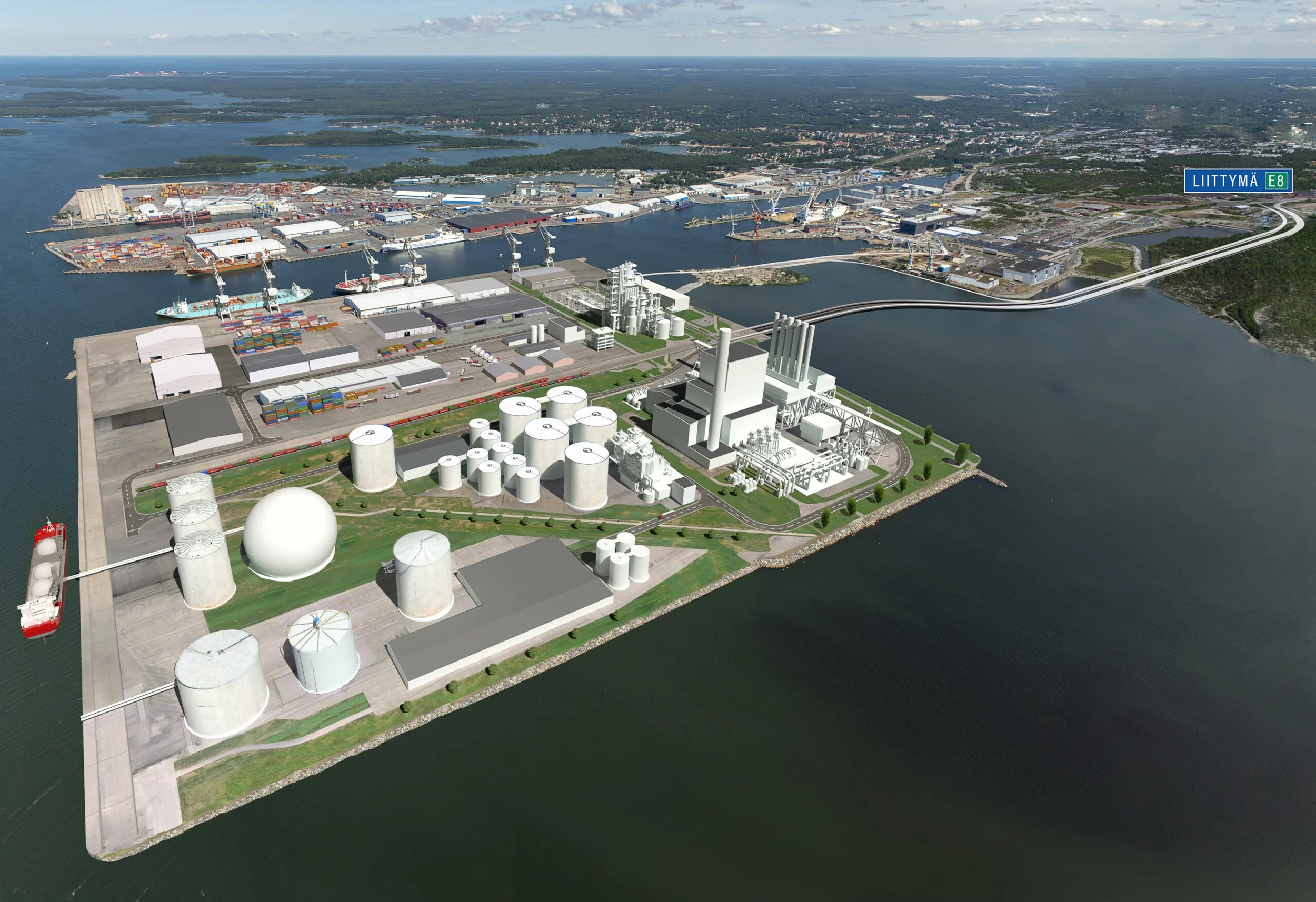 Merimetsosaarina tunnetuille Järviluodoille suunnitellaan isoja vihreän siirtymän hankkeita. Niistä ensimmäinen on julkistettu. Luoto Energia aikoo valmistaa uusiutuvaa vetyä ja synteettistä maakaasua. “Puhutaan varmasti yli miljardin euron investoinnista”, sanoi CPC Finlandin toimitusjohtaja Erik Trast. (Havainnekuva: Rauman Satama)